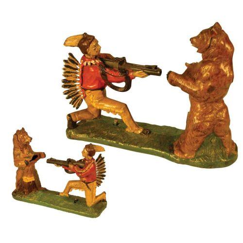 Indian Shooting Bear Mechanical Bank, patent date 1888. All original and complete working condition. 10 1/2 X 8 X 3 inches.