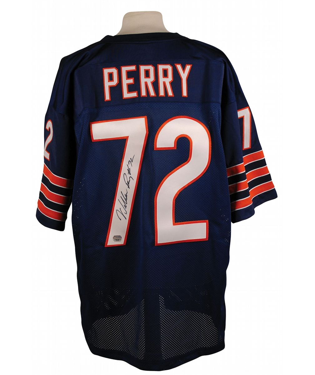 Official replica Chicago Bears football jersey, with sewn on letters and numbers, signed in black felt tip on the number on the back. In fine condition, with an authentication label affixed to number.