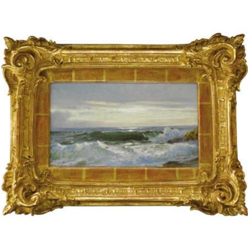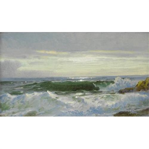 <B>WILLIAM TROST RICHARDS (American, 1833-1905)</B></I><BR><I>Crashing Surf</B></I><BR>Oil on board<BR>9 x 15 inches (22.9 x 38.1 cm)<BR>Signed lower right: <I>Wm. T Richards</B></I><BR> <B>Condition Report:</B> Excellent condition.<BR><BR><b>Shipping:</b> Requires 3rd Party Shipping (<a target="_blank" href="http://www.heritageauctions.com/common/shipping.php">view shipping information</a>)