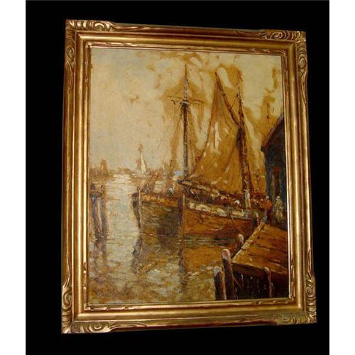 Signed William Ward Jr. lower left, original period gilt wood frame. William Ward Jr. died in 1935 and painted Canadian, Italian, Village, Fisherman, Wharf, sailboat and costal scenes as per the 2004 Davenport's and would make a great addition to any fine American art collection. ****NOTE: Email for larger images.