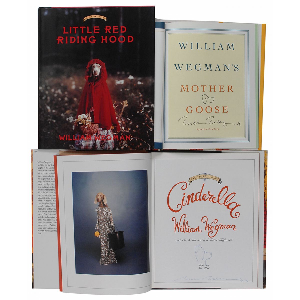 Three hardcover books: Mother Goose, signed on the title page in black felt tip along with a sketch of a dog; Little Red Riding Hood, signed on the half-title page in black felt tip along with a sketch of a dog as Little Red Riding Hood; and Cinderella, signed on the title page in blue ballpoint along with a sketch of a dog. In overall fine condition.