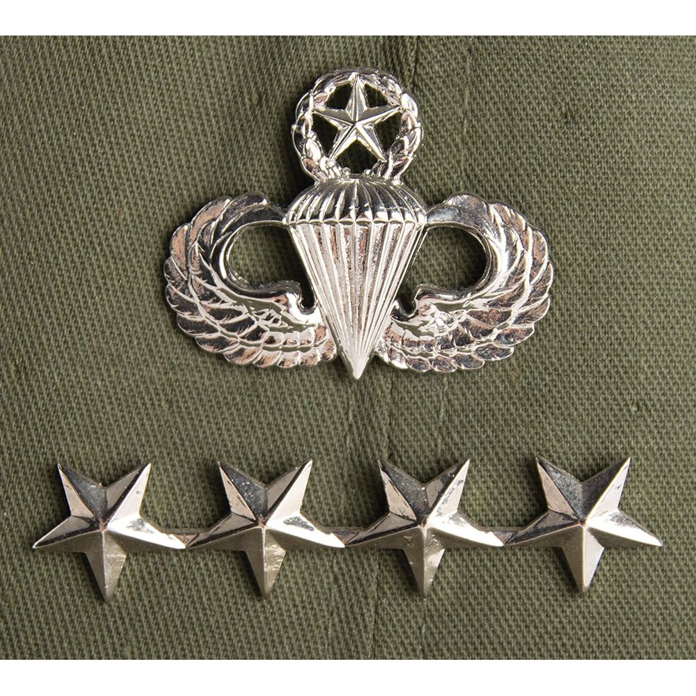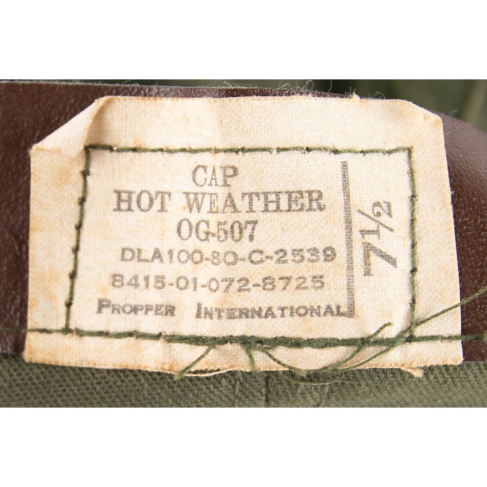 From the personal collection of General William Westmoreland—a U.S. Army (Hot Weather) olive drab field cap, size 7 ½, signed and inscribed on the brim in black felt tip, “To Rudi: W. C. Westmoreland.†The crown bears a U.S. Army Airborne Master Parachutist Paratrooper Jump Wings pin and a four-star general rank insignia pin. The inner brown band bears a laundering instructions label and a Propper International label marked: “Cap, Hot Weather, OG-507, DLA100-80-C-2539, 8415-01-072-8725.†In fine condition. Accompanied by an image of Westmoreland presenting the cap to the recipient.