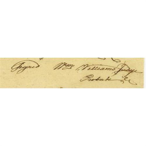 <B>William Williams Autograph Document Signed</B></I> <I>"Wm Williams Judge/Probate,"</B></I> one page, 6" x 7.5". Lebanon, District of Windham Connecticut , June 24, 1785. In full, <I>"These may inform & Certifie Whom it may Concern that Mr Amariah Rockwell of Coventry is duly appointed Sole Administrator on the Estate of his Son Daniel Rockwell of sd Town late a Soldier in the Connecticut Line of the Continental Army Decd & has given Bonds according to Law."</B></I> Noted to be signed by Williams <I>"in the absence of yr Clerk".</B></I> Amariah Rockwell (1728-1800) was the father of Daniel Rockwell (1753-1777) who died at the age of 23 on May 2, 1777 at Coventry, Connecticut. Both had fought in the American Revolution. William Williams, a member of the Continental Congress in 1776 and 1777, was a signer of the Declaration of Independence. From 1776-1804, he served as judge of the County Court of Windham and judge of probate for the Windham district from 1776-1808. In 1787, Williams was a member of the Connecticut convention that ratified the U.S. Constitution. With light folds, the document is in very fine condition.<BR><BR><b>Shipping:</b> Flat Material, Small (<a target="_blank" href="http://www.heritageauctions.com/common/shipping.php">view shipping information</a>)