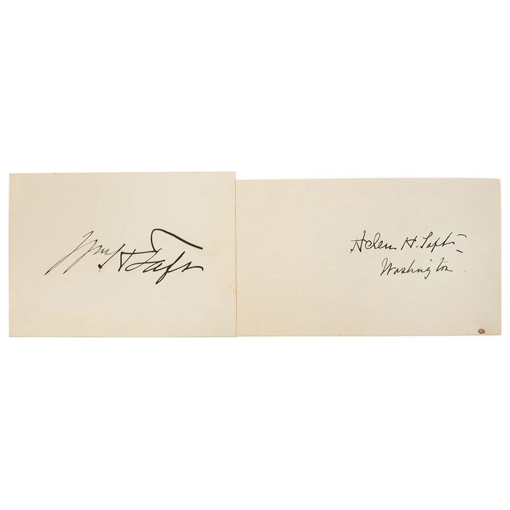 Two off-white cards, 3.5 x 2.5 and 4.25 x 2.5, individually signed in fountain pen, "Wm. H. Taft" and "Helen H. Taft, Washington." In overall fine condition.