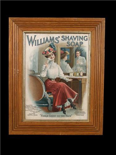 Williams Shaving Soap Cardboard Poster c.1915 great image framed 17 x 21