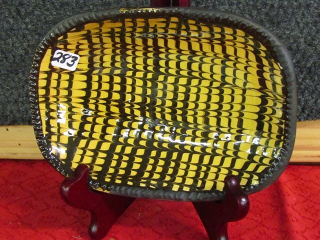 Williamsburg Pottery Yellow & Brown Serving Dish with Comb Decoration 7.5"
