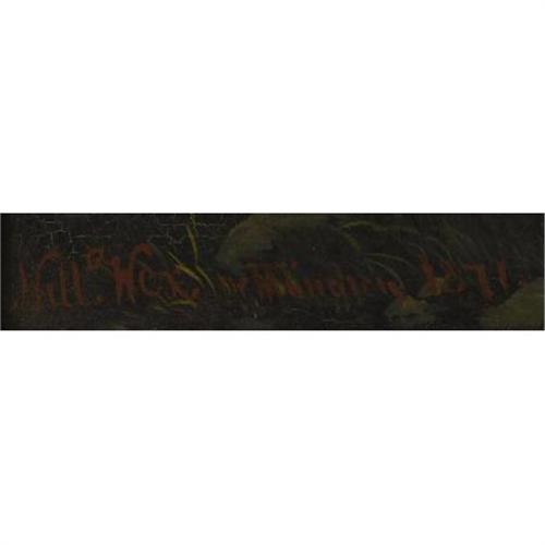 <B>WILLIBALD WEX </B></I>(German 1831-1899)<BR><I>An Alpine Farm</B></I>, 1871<BR>Oil on original unlined canvas<BR>34 x 45 inches (86.4 x 114.3 cm)<BR>Signed lower left: <I>Will. Wex München 1871</B></I><BR> <BR>Provenance:<BR>N.M. Vose Gallery Providence, Rhode Island, Inv.#6065B, label verso on stretcher;<BR>Skinner, September 26, 1997, lot 212<B>Condition Report:</B> Canvas slack in frame; scattered losses to perimeter of canvas; otherwise very good condition.<BR><BR><b>Shipping:</b> Requires 3rd Party Shipping (<a target="_blank" href="http://www.heritageauctions.com/common/shipping.php">view shipping information</a>)