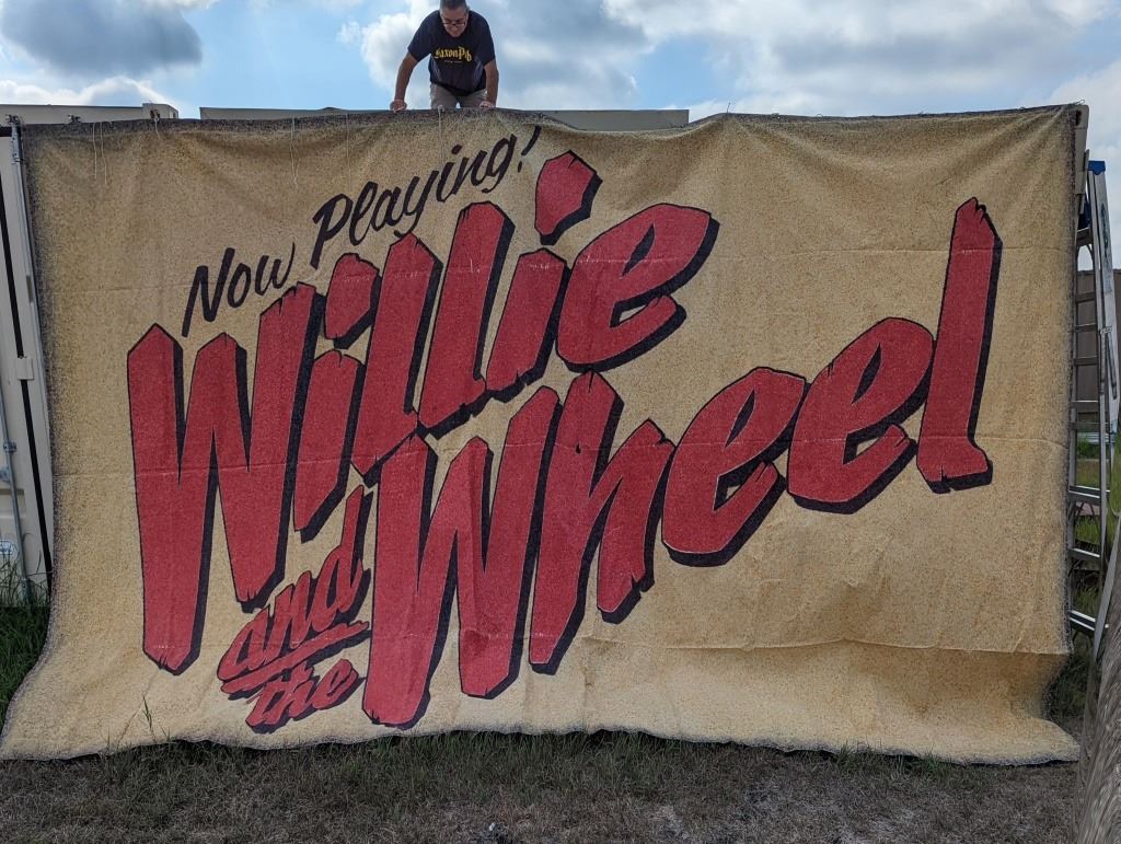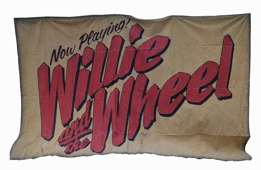 Hand painted sign used as a stage backdrop for the Willie & The Wheel concerts. From Ray Benson's personal collection. 11ft. H X 22ft. W