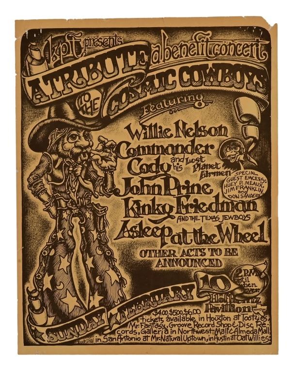 Willie Nelson, Commander Cody, Asleep At The Wheel, 8.5" x 11" by Micael Priest From Ray Benson's personal collection.