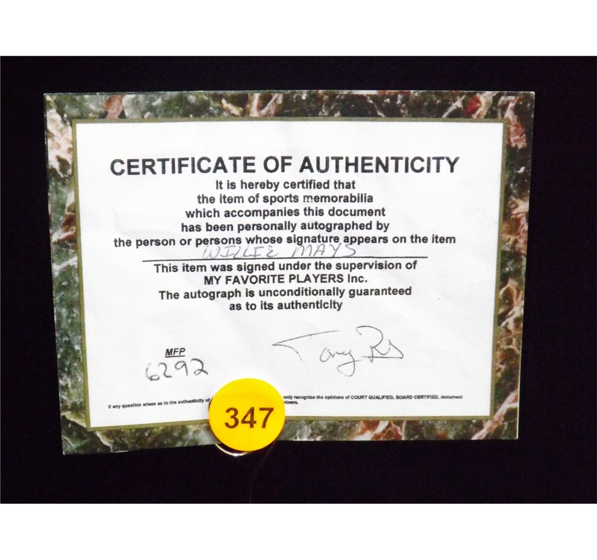Willie Mays Autographed Baseball. Rawlings Official National Baseball Autographed by Willie Mays. Appraised or estimated retail value $800. COA by My Favorite Players. All Sales Final. Please see terms and conditions of auction.