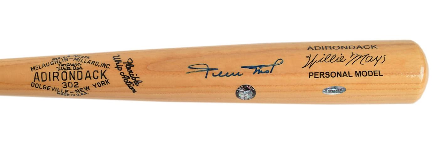 Official Adirondack 'Willie Mays' Personal Model baseball bat signed on the barrel in blue felt tip by Mays. In very fine condition, with Steiner Sports and Say Hey labels affixed near signature. Accompanied by a certificate of authenticity from Steiner Sports.