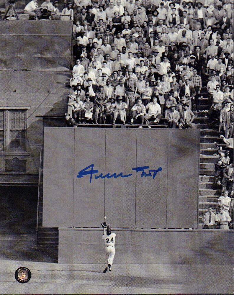 Black and white 8x10 photo of "The Catch" signed by Willie Mays. Mr. Mays affixed his private "Say Hey" hologram to the front bottom corner. All items come with a certificate of authenticity good for the life of the piece.
