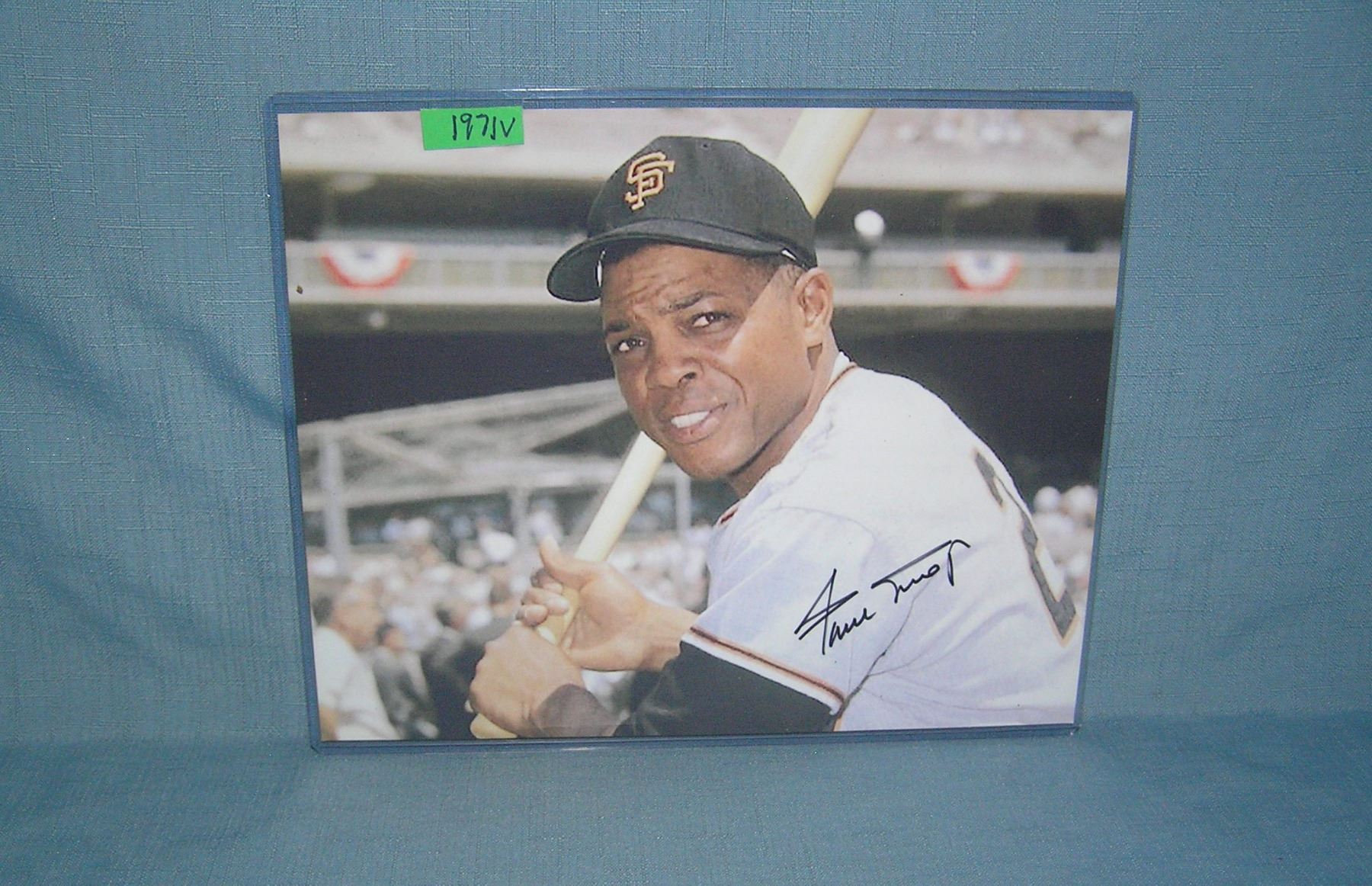Willie Mays autographed 8 by 10 color photo with certificae of authenticity est. value $150.00-$200.00