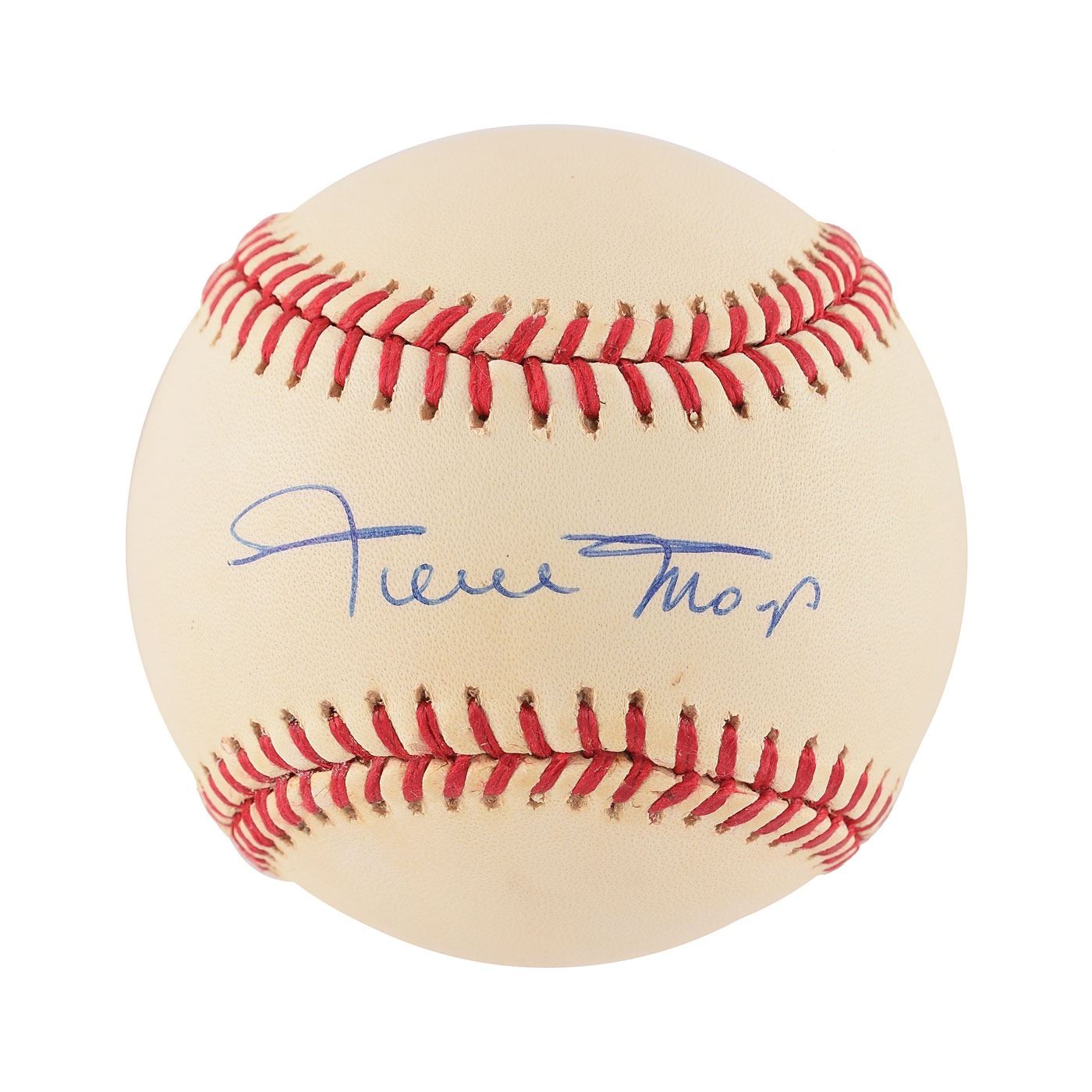 Official Rawlings National League (White) baseball signed on the sweet spot in blue ballpoint by Willie Mays. In fine condition.