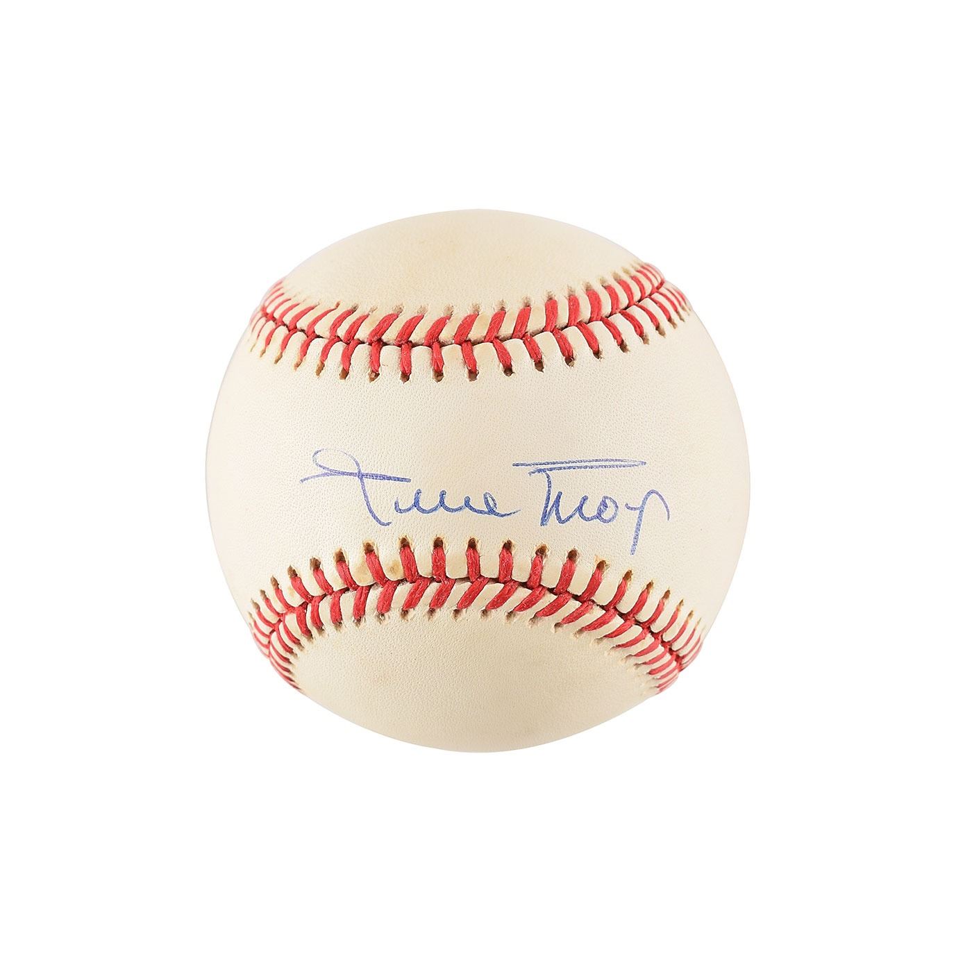 Official Rawlings National League (White) baseball signed in blue ballpoint on the sweet spot by Willie Mays. In fine condition.