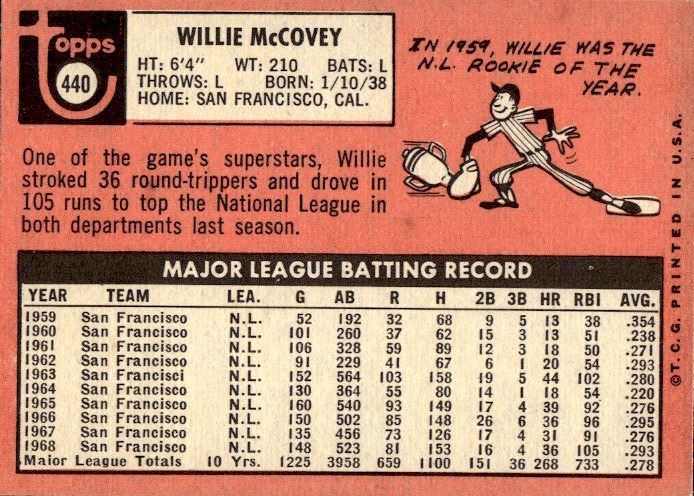 Willie McCovey 1969 Topps #440 in Very Good Condition