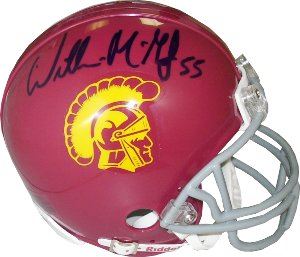 Willie McGinest earned all-conference honors three straight years and All-American acclaim. During his senior year, he was a Lombardi Award finalist, and earned All-American and All-Pac-10 conference honors. Willie McGinest has hand autographed this USC Trojans Riddell Mini Helmet. Paid, Inc. Hologram and Certificate of Authenticity.