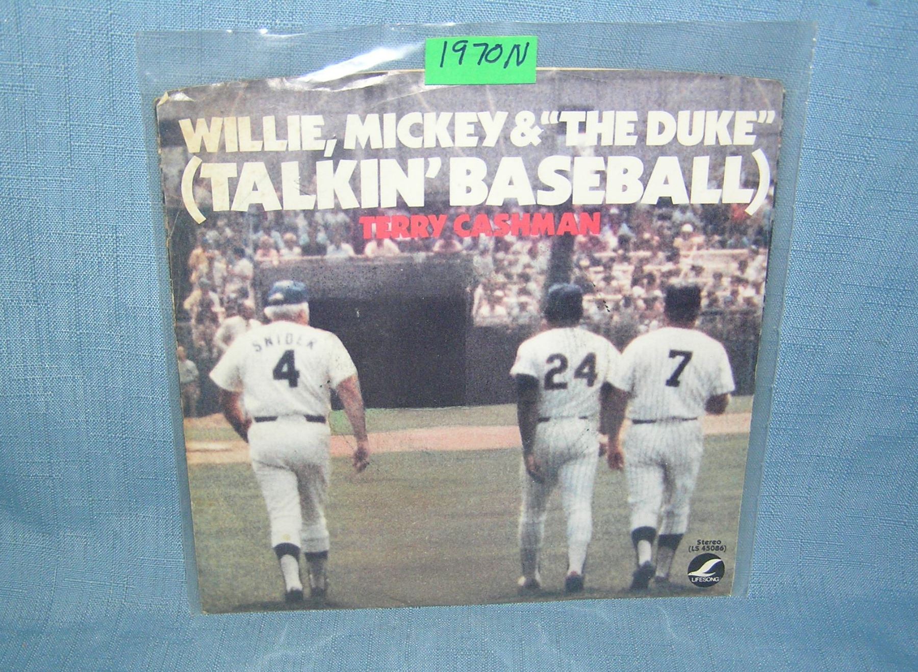 Willie, Mickey and the Duke Talkin' baseball record with photo illustrated cover sleeve by Terry Cashman est. value $75.00-$80.00