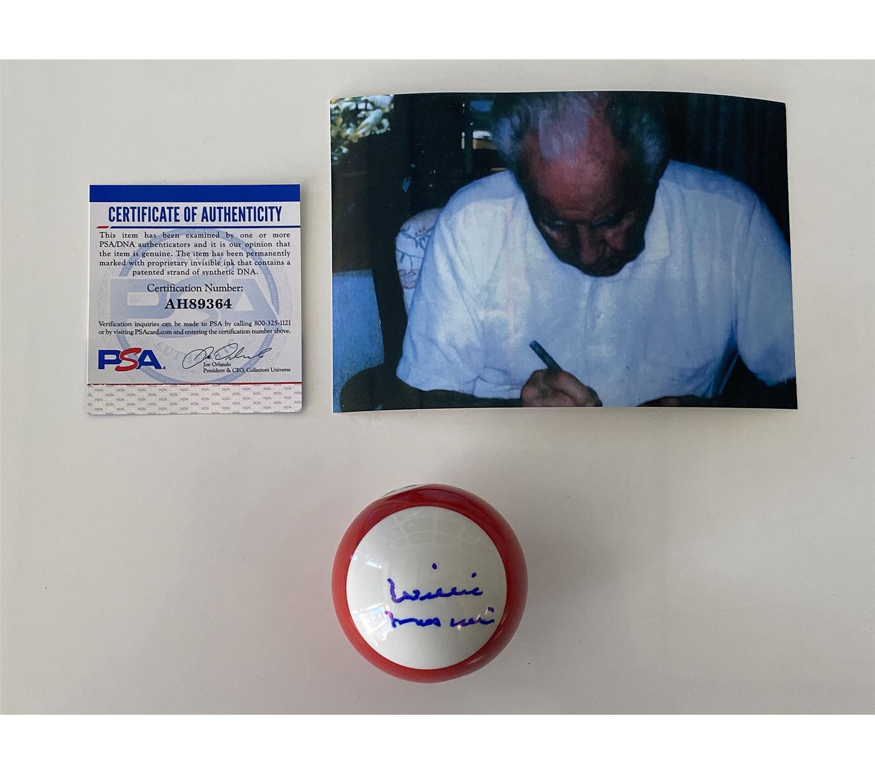 Willie Mosconi signed billiard ball. PSA authenticated. standard size