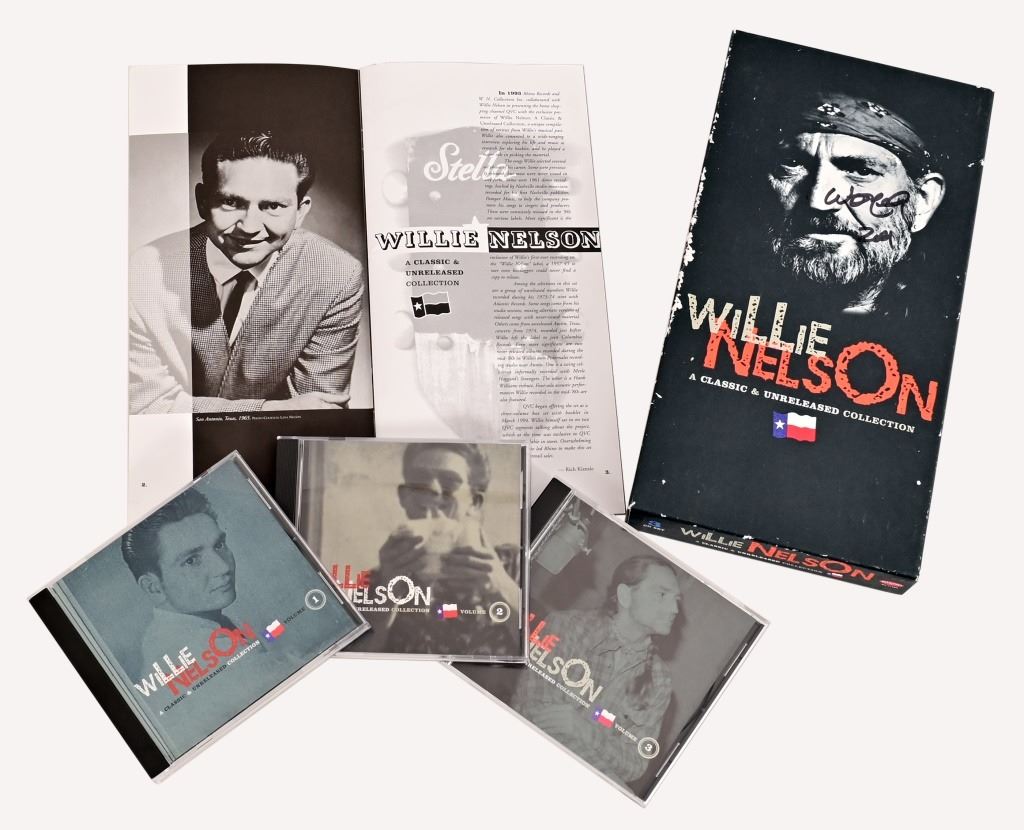 3 Volume Collection. A unique compilation of rarities from Willie's musical past.. In original box and with booklet exploring Willie's life and music. Autographed by Willie Nelson. From Ray Benson's personal collection.