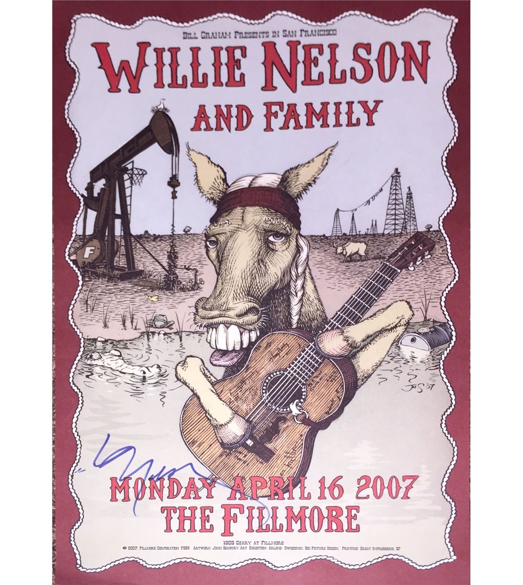 Willie Nelson Original Signed 2007 Concert Poster from a show at The Fillmore