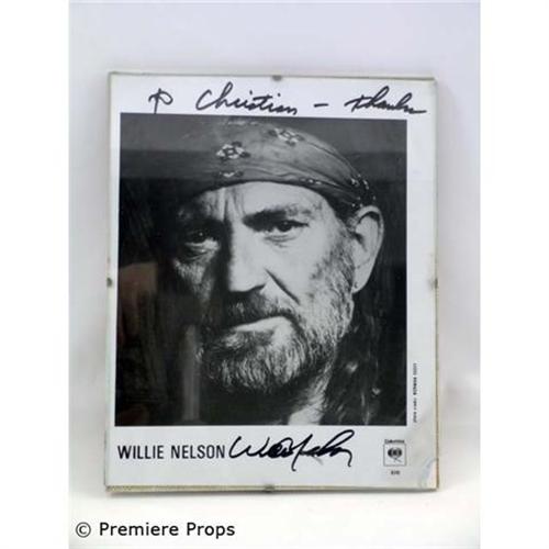 This is a black & white photo of Willie Nelson enclosed in a glass frame. The picture is autographed: to Christian Slater from Willie. This is taken from Christian Slater's personal memorabilia collection. (approx. 10" x 8" / both right corners are chipped) (CH2093)