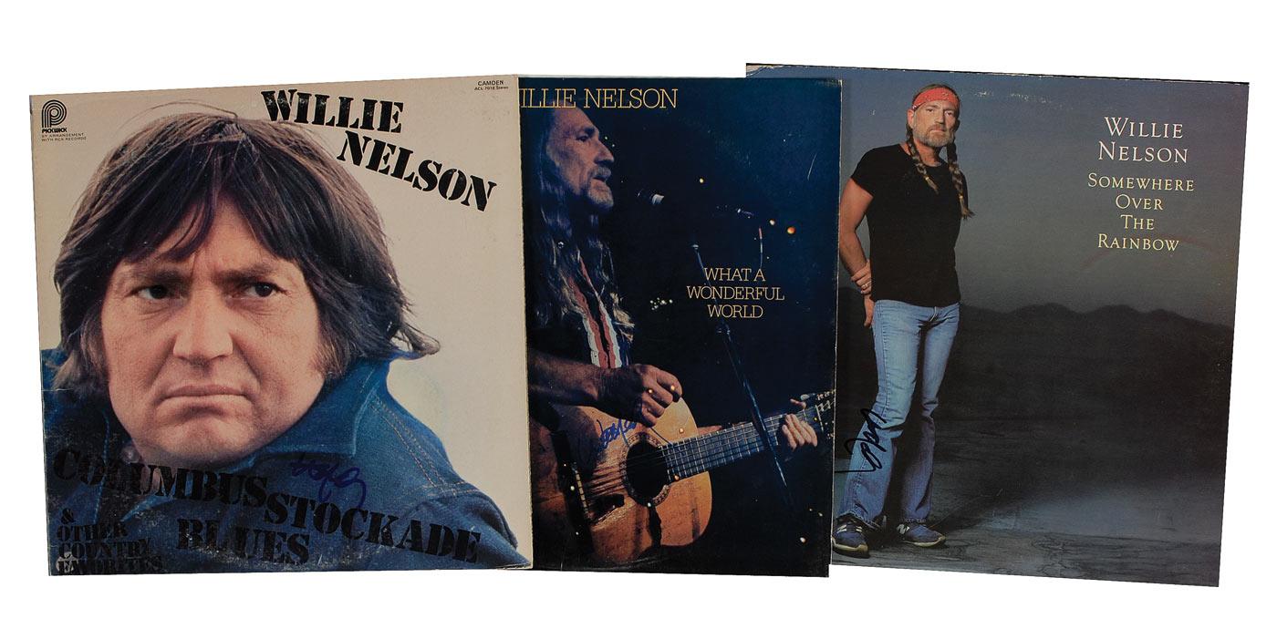 Three albums, Somewhere over the Rainbow, What a Wonderful World, and Columbus Stockade Blues, each signed on the front cover in blue or black felt tip. In fine condition, with scattered light wear to covers and edges. The records are included.