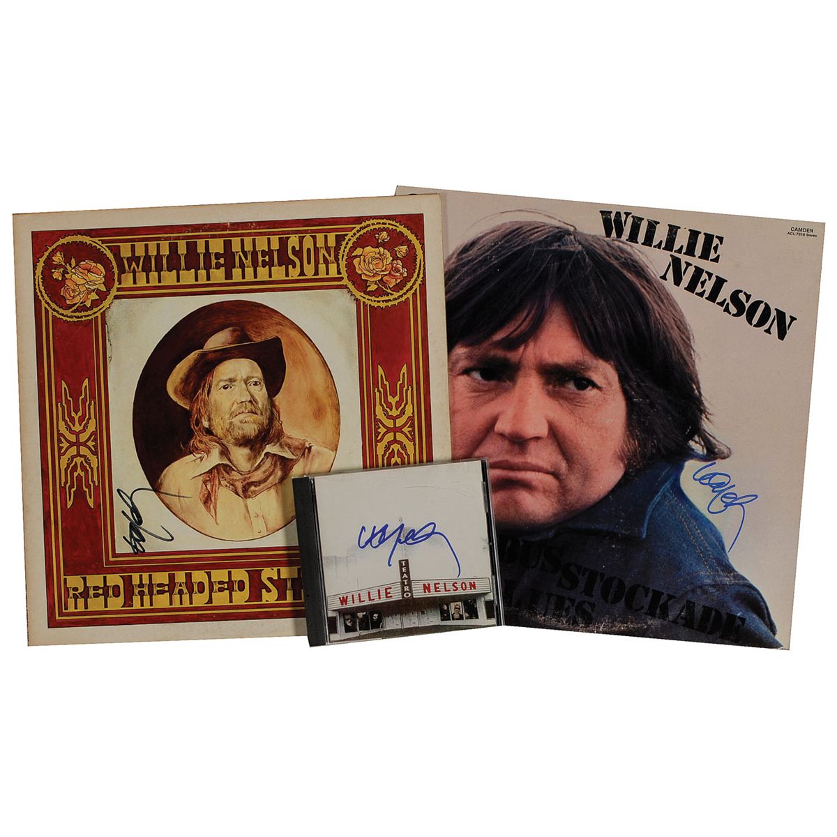 Three items: Teatro CD, signed on the front cover of the booklet in blue felt tip; Columbus Stockade Blues album signed on the front cover in blue felt tip; and a Red Headed Stranger album signed in black felt tip. In fine condition, with scattered light wear to album covers. The albums and CD are included.