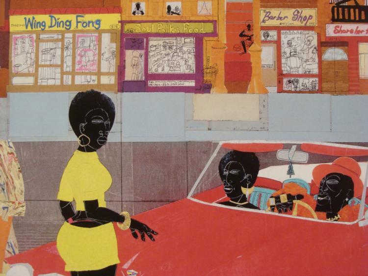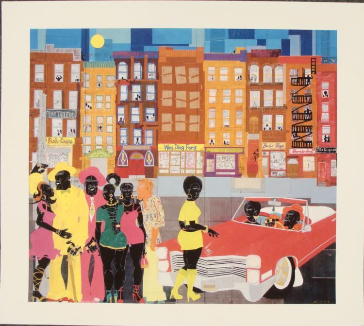 The artist captures life on the urban streets with a na ve yet honest portrayal in this print. Artist: Willie Torbert Title: Game On * Image Size: '18 1/2 x 21 inches. Paper Size: 22 x 23 7/8 inches.