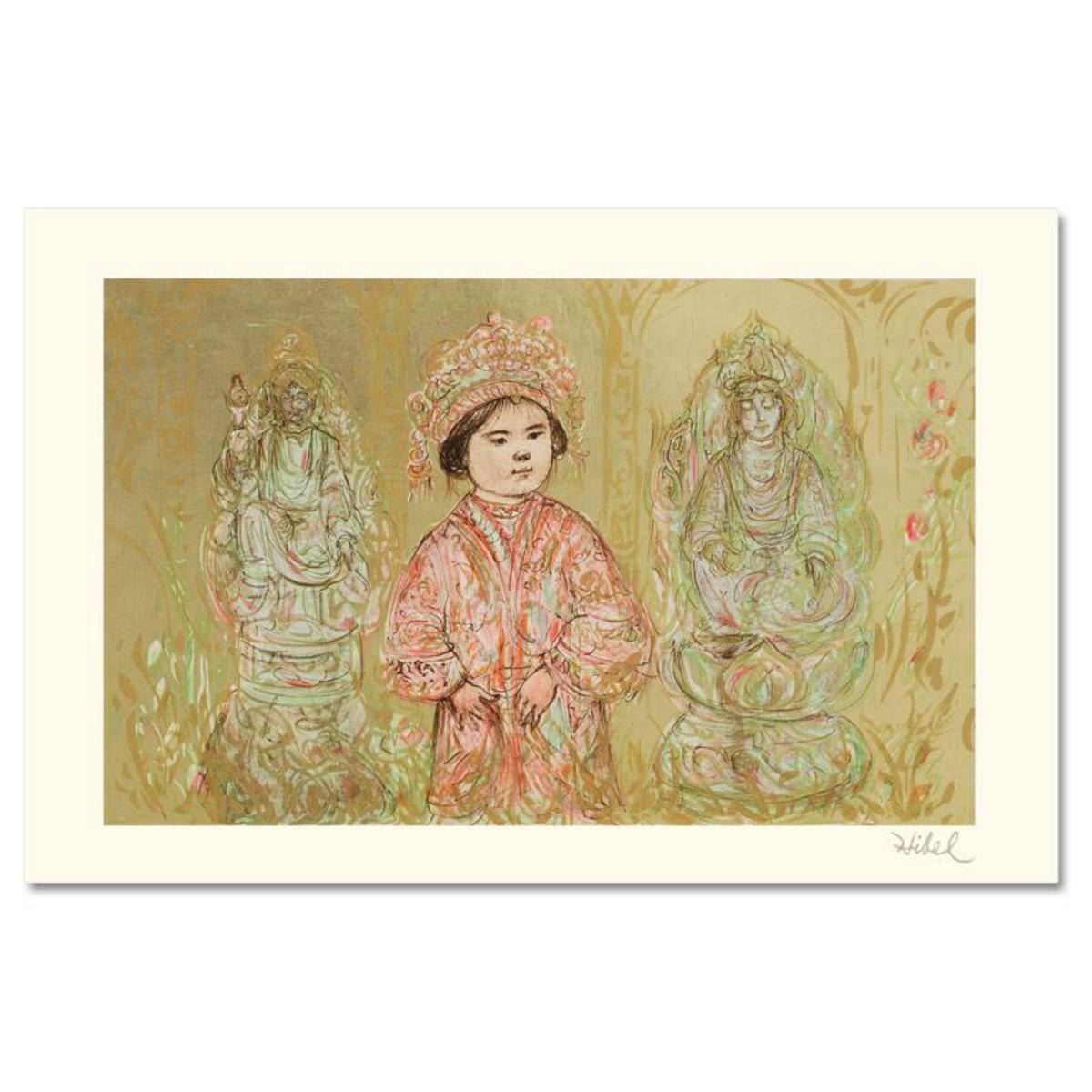 "Willie and Two Quan Yins" Limited Edition Lithograph by Edna Hibel, Numbered and Hand Signed with C