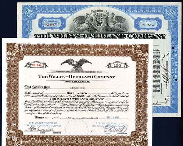 Ohio, 1924, 10 Shares and 1936, 100 Shares, Issued Stock, Fine to VF condition.