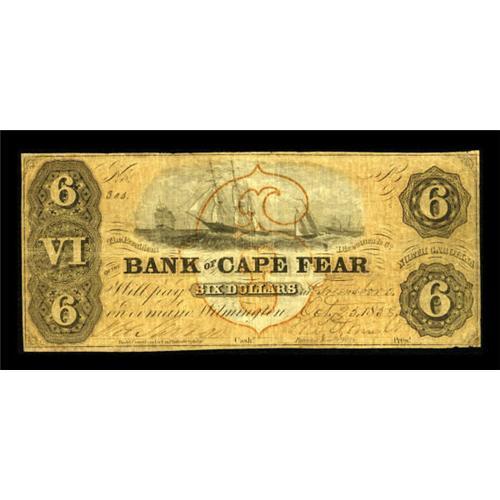 Wilmington- Bank of Cape Fear $6 Oct. 23, 1858