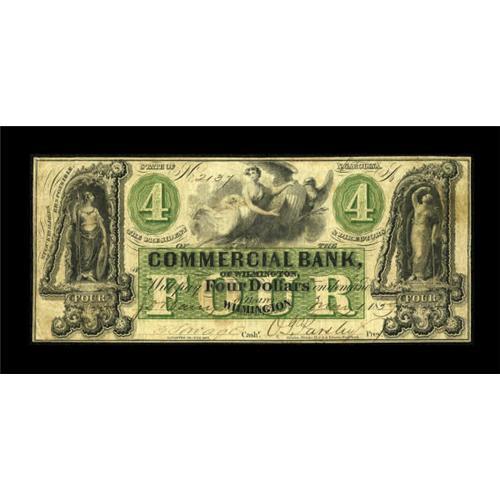 <B>Wilmington, NC- Commercial Bank of Wilmington</B></I> $4 Mar. 1, 1859 G6b<BR> We have had an example of this green overprint variety only once before. <B>Fine.</B></I><BR><BR><b>Shipping:</b> Coins & Currency (<a target="_blank" href="http://www.heritageauctions.com/common/shipping.php">view shipping information</a>)