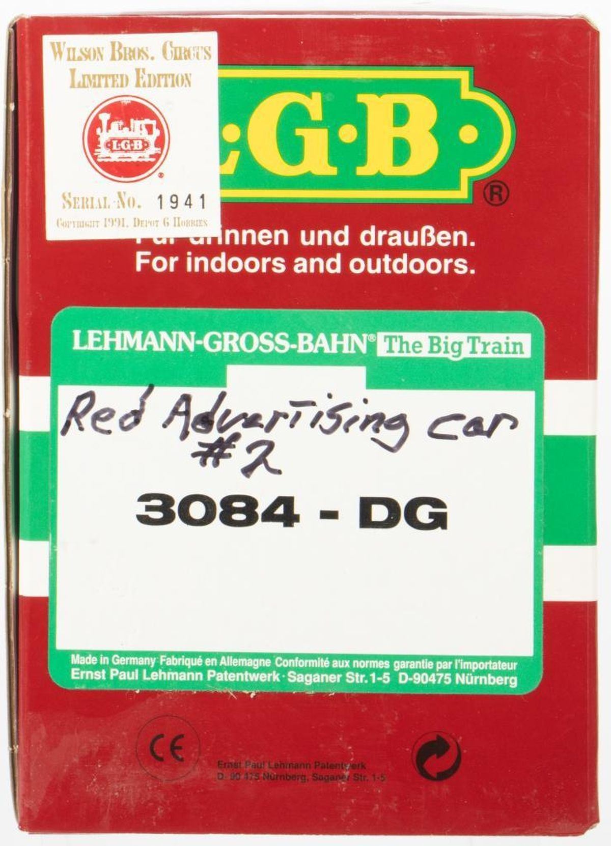 Wilson Brothers Circus White/Red Combine Advertising Car Limited Edition Serial Number 1941 LGB3084 - DG New Old Stock - box has sleeve