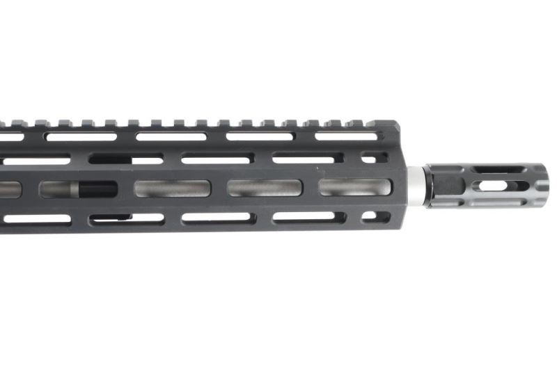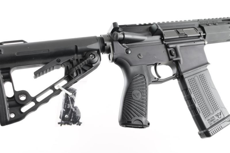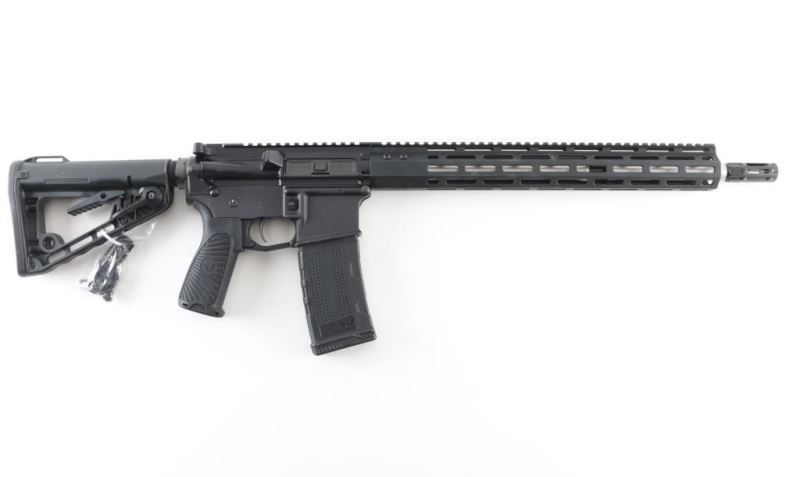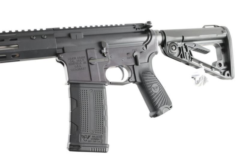 SN: WCA35587 'Protector Series' Extremely well built & reliable direct impingement operated semi-automatic AR pattern rifle chambered in 5.56mm NATO. Features a low-signature black Armor-Tuff finish, LE profile 16.25” match grade precision button rifled stainless steel barrel with satin finish, Q-Comp muzzle brake, mil-spec forged upper & lower receiver, mid-length gas system, 15” free-floated slim profile M-LOK handguard, drop-in two-stage TTU trigger with 4 pound pull, oversized aluminum triggerguard, nitride coated M16 profile bolt carrier group, shell deflector, forward assist, dust cover, mil-spec charging handle, two-position selector on the left side of the lower receiver, push button magazine release, factory 30 round polymer magazine, Wilson Combat/BCM Starburst pistol grip, and Wilson Combat/Rogers super-stoc four-position telescoping shoulder stock. Includes the original factory cardboard box with literature, QD socket mount, 4” rail segment, 2 oz bottle of oil, cleaning cloth & an offer for a free 1 year subscription to the NRA. Rifle exhibits no signs of use or wear. Condition is like NRA Perfect in box. ***Modern Firearm***