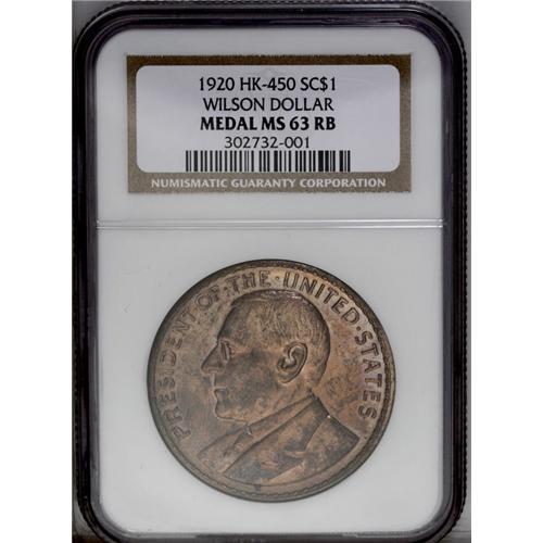 Wilson Dollar in bronze 1920, HK-450, MS63 RB NGC, espe