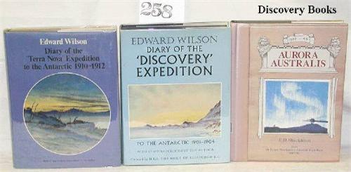 Wilson, Edward. DIARY OF THE DISCOVERY EXPEDITION TO THE ANTARCTIC REGIONS 1901-1904. London: 1966 416pp. Illus, color plates, maps. Cloth, very good in d/j. ….. with …… DIARY OF THE TERRA NOVA EXPEDITION TO THE ANTARCTIC 1910-1912. London: 1972 xxiii,279pp. Many illus. Incl. color. Cloth, very good in d/j…….. with …….. Shackleton, E. H. AURORA AUSTRALIS. England, Airlife 1988 Unpag. Cloth, vg in d/j. (3)