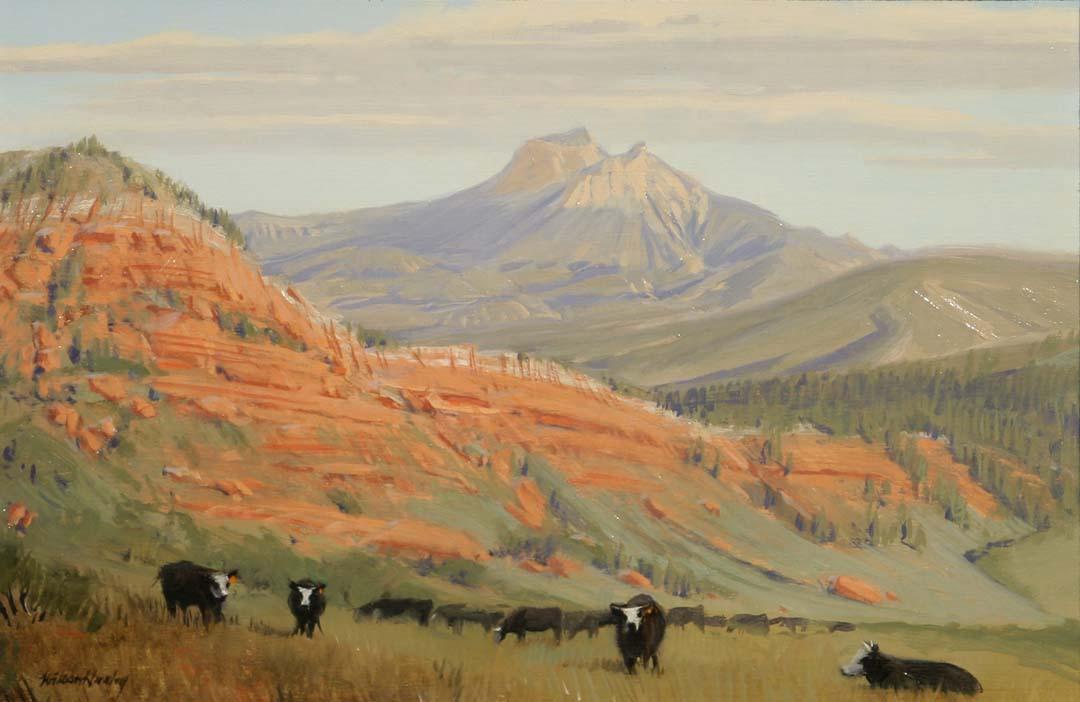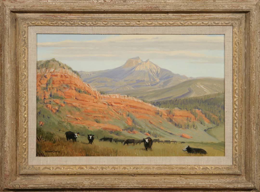 Wilson Hurley (1924-2008). Hart Peak And Ye Olde Chugwater. 12" x 18" oil on board. Signed lower left. (est $8,000-10,000). For condition reports please visit: www.auctioninsantafe.com/cr2011.pdf