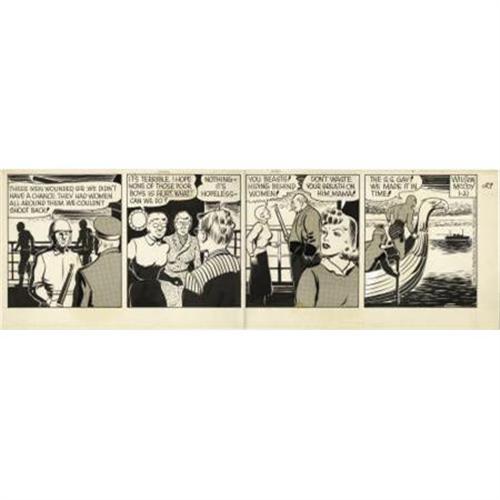 <B>Wilson McCoy - The Phantom Daily Comic Strip Original Art, dated 1-21-55 (King Features Syndicate, 1955). </B></I> The Phantom closes in on a band of craven kidnappers. Soon, they will feel the sting of his skull ring on their jaws. The image area of this daily measures 20.5" x 6", and the art is in Excellent condition. <BR><BR><b>Shipping:</b> Flat Material, Large (<a target="_blank" href="http://www.heritageauctions.com/common/shipping.php">view shipping information</a>)