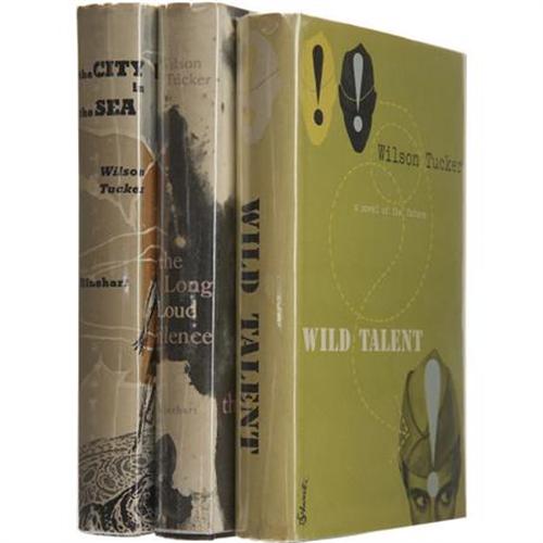 <B>Wilson Tucker: Three First Editions.</B></I> Includes the following:<BR><B><I>The City in the Sea</B></I></B></I> (New York: Rinehart & Co., 1951), first edition, 250 pages, black boards, 8vo, dust jacket. Condition (book/ dj): very good / about very good<BR><B><I>The Long Loud Silence</B></I></B></I> (New York: Rinehart & Co., 1952), first edition, 217 pages, black boards, 8vo, dust jacket. Condition (book/ dj): fine / fine<BR><B><I>Wild Talent</B></I></B></I> (New York: Rinehart & Co., 1954), first edition, 250 pages, green boards, 8vo, dust jacket. Condition (book/ dj): near very good / near fine<BR><BR><b>Shipping:</b> Books & Catalogs (<a target="_blank" href="http://www.heritageauctions.com/common/shipping.php">view shipping information</a>)