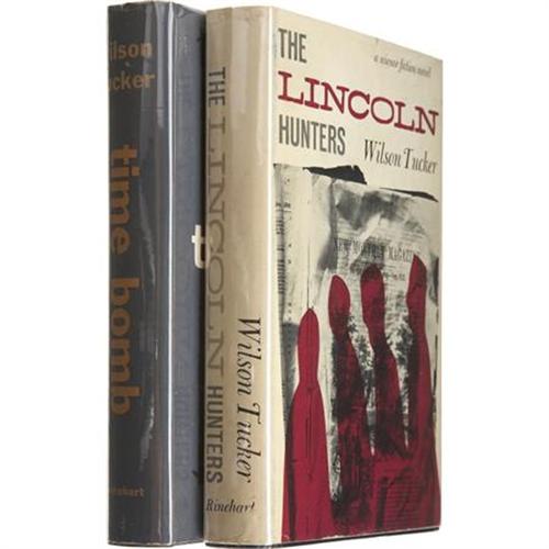 <B>Wilson Tucker: Two Science Fiction Books.</B></I> Includes the following:<BR><B><I>Time Bomb.</B></I></B></I> (New York: Rinehart, 1955), first edition, 246 pages, black boards, 12mo, dust jacket. Condition (book/ dj): very good/ very good.<BR><B><I>The Lincoln Hunters.</B></I></B></I> (New York: Rinehart, 1958), first edition, 221 pages, black boards, 12 mo, dust jacket. Condition (book/ dj): very good/ very good.<BR><BR><b>Shipping:</b> Books & Catalogs (<a target="_blank" href="http://www.heritageauctions.com/common/shipping.php">view shipping information</a>)
