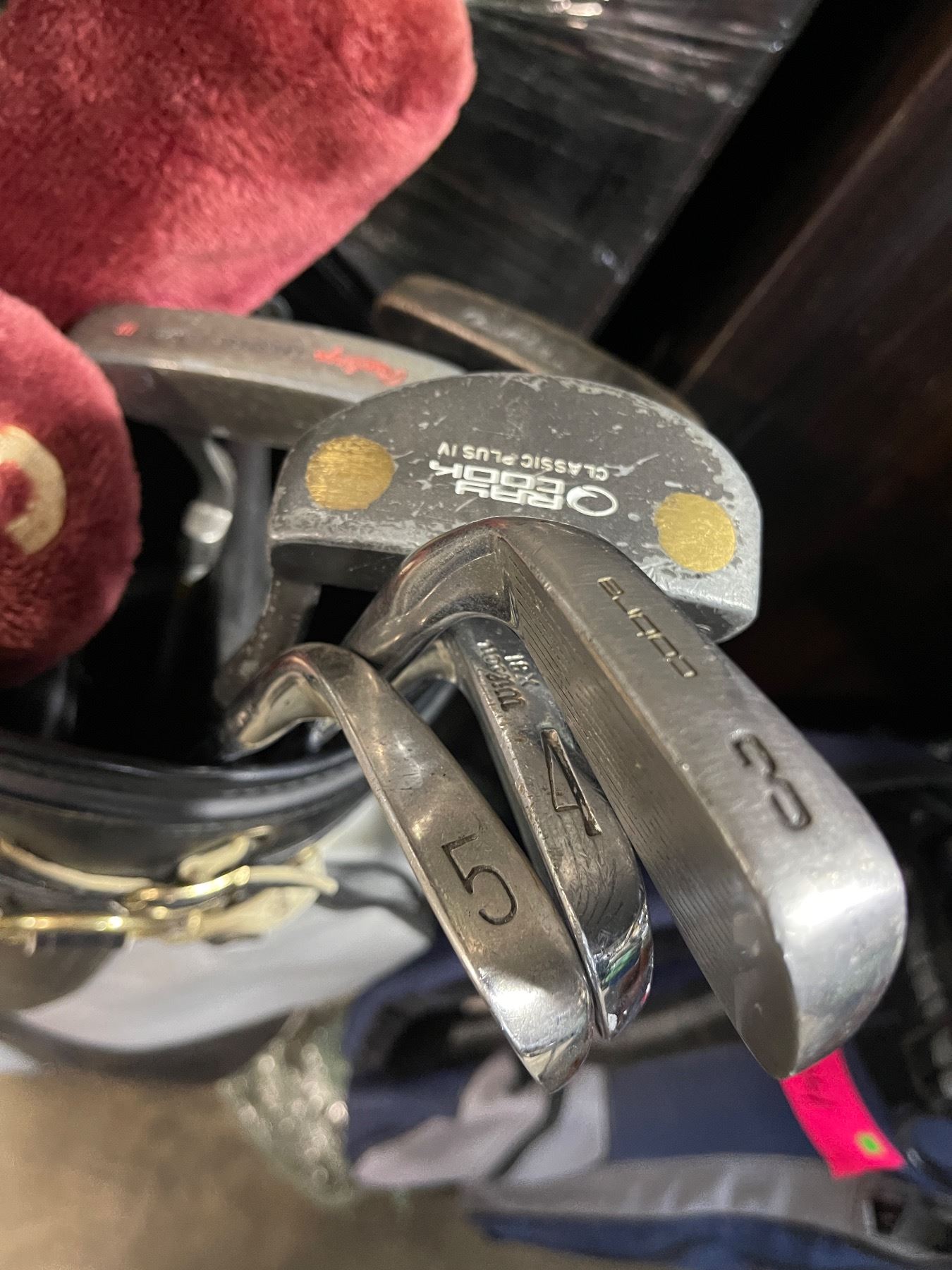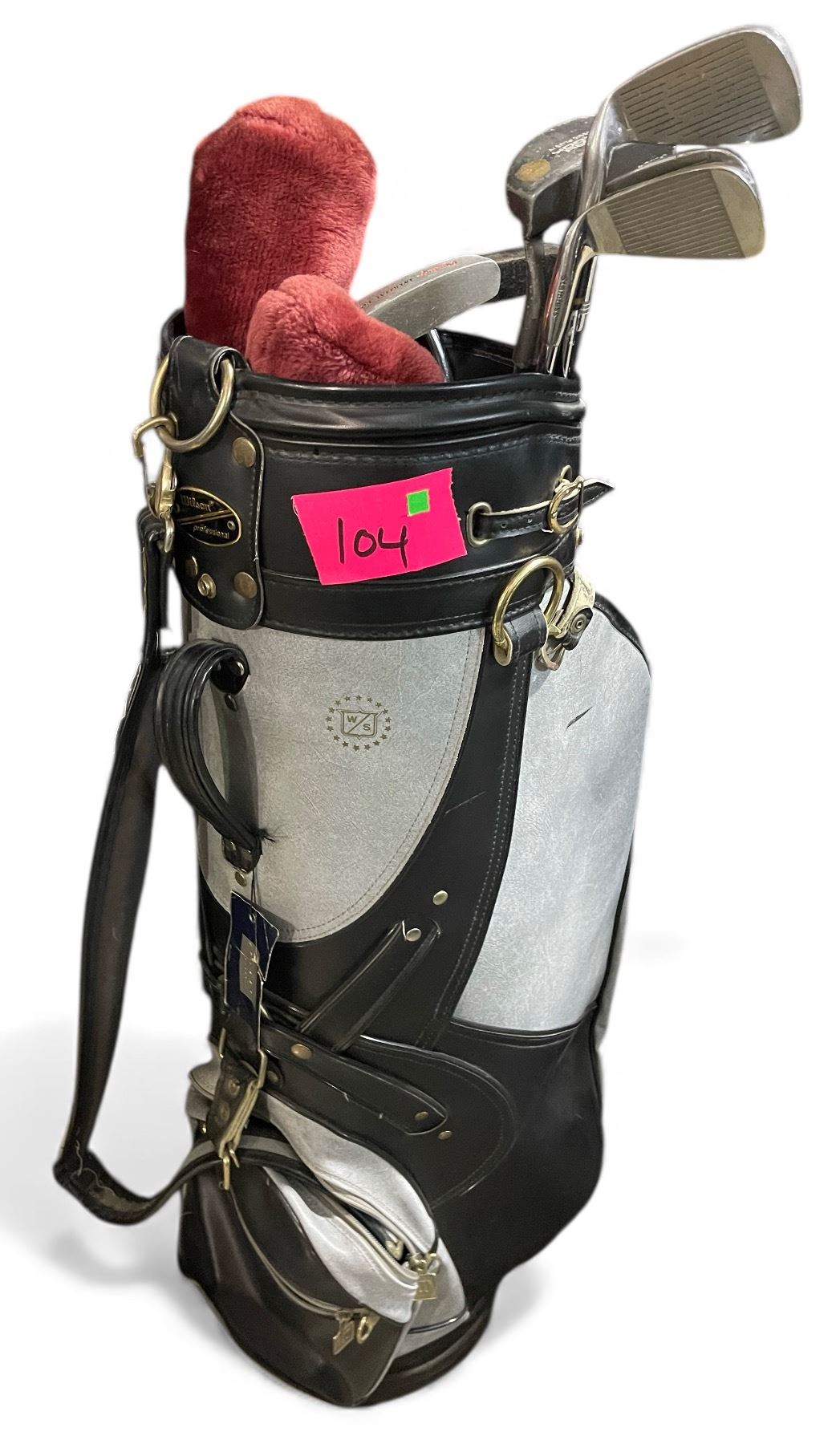 Wilson Vintage Leather Golf Bag with Assorted Clubs