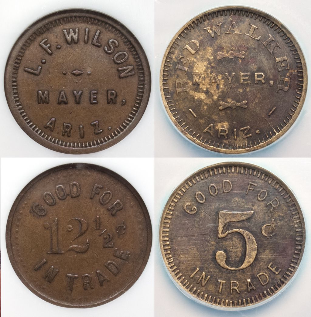 1) XF 45 L. F. Wilson, / Mayor / Ariz // GF 12 1/2c IT. 2) Red Walker / Mayor / Ariz // GF 5c IT.City: MayorCounty: YavapaiState: AZDate: