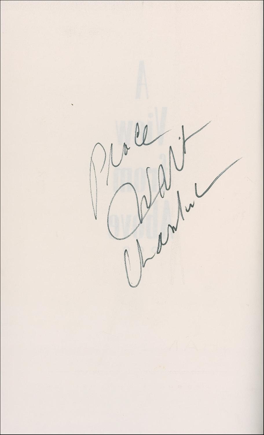 Signed book: A View from Above. First edition, later printing. NY: Villard Books, 1991. Hardcover with dustjacket, 6.5 x 9.5, 290 pages. Signed on the reverse of the half-title page in black felt tip, “Peace, Wilt Chamberlain.” In fine condition.