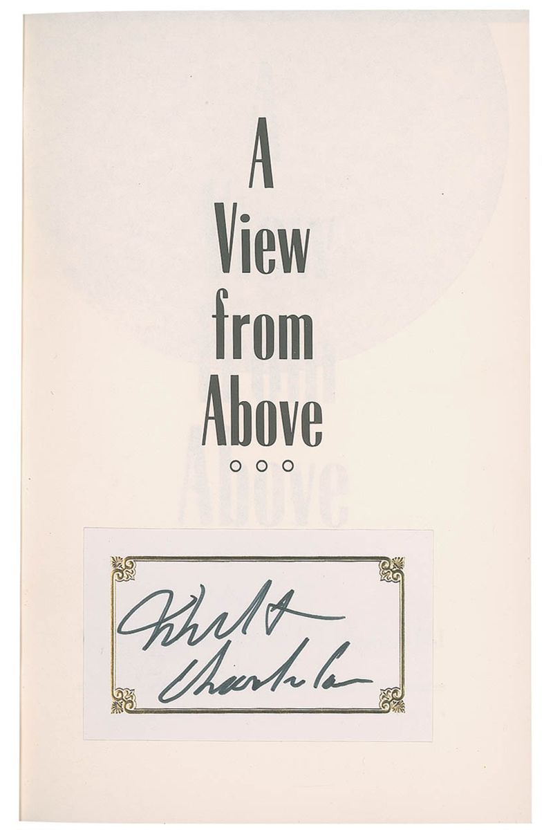 Signed book: A View from Above. First edition, later printing. NY: Villard Books, 1991. Hardcover with dustjacket, 6.5 x 9.5, 290 pages. Signed on black felt tip on a bookplate affixed to the half-title page. In fine condition.