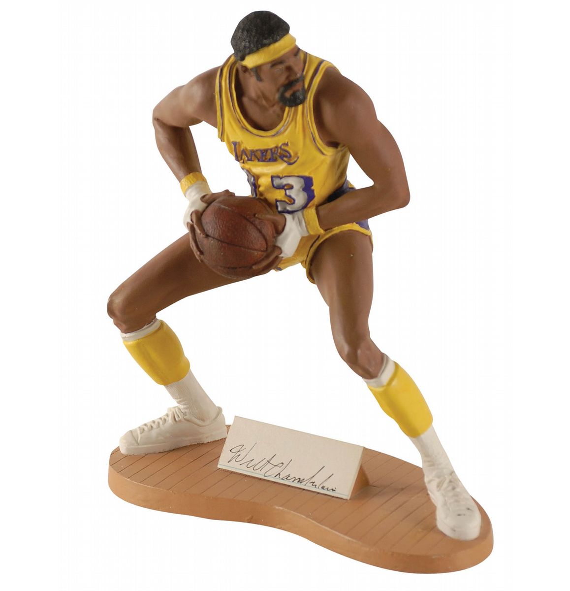 Porceline figurine of Chamberlain in his Laker’s uniform, 10.5? high, signed on the base in black ink. In fine condition.