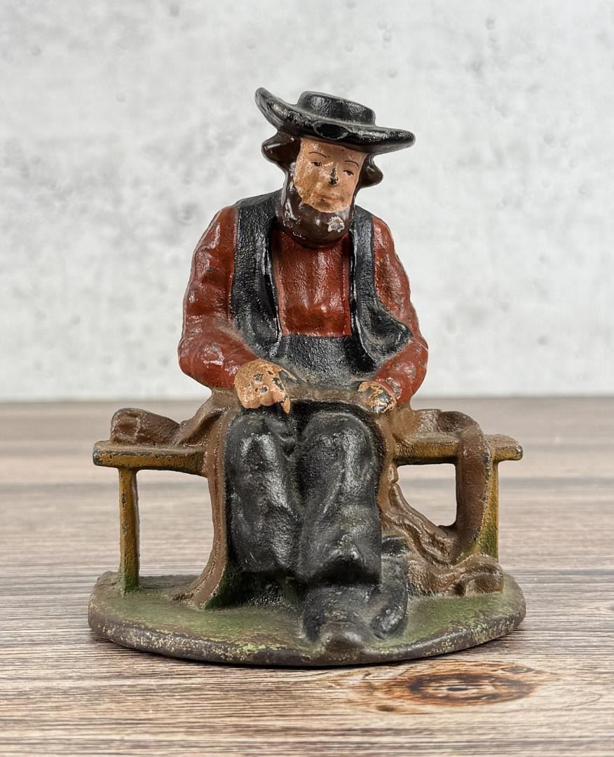Wilton Cast Iron Amish Man on Bench Doorstop