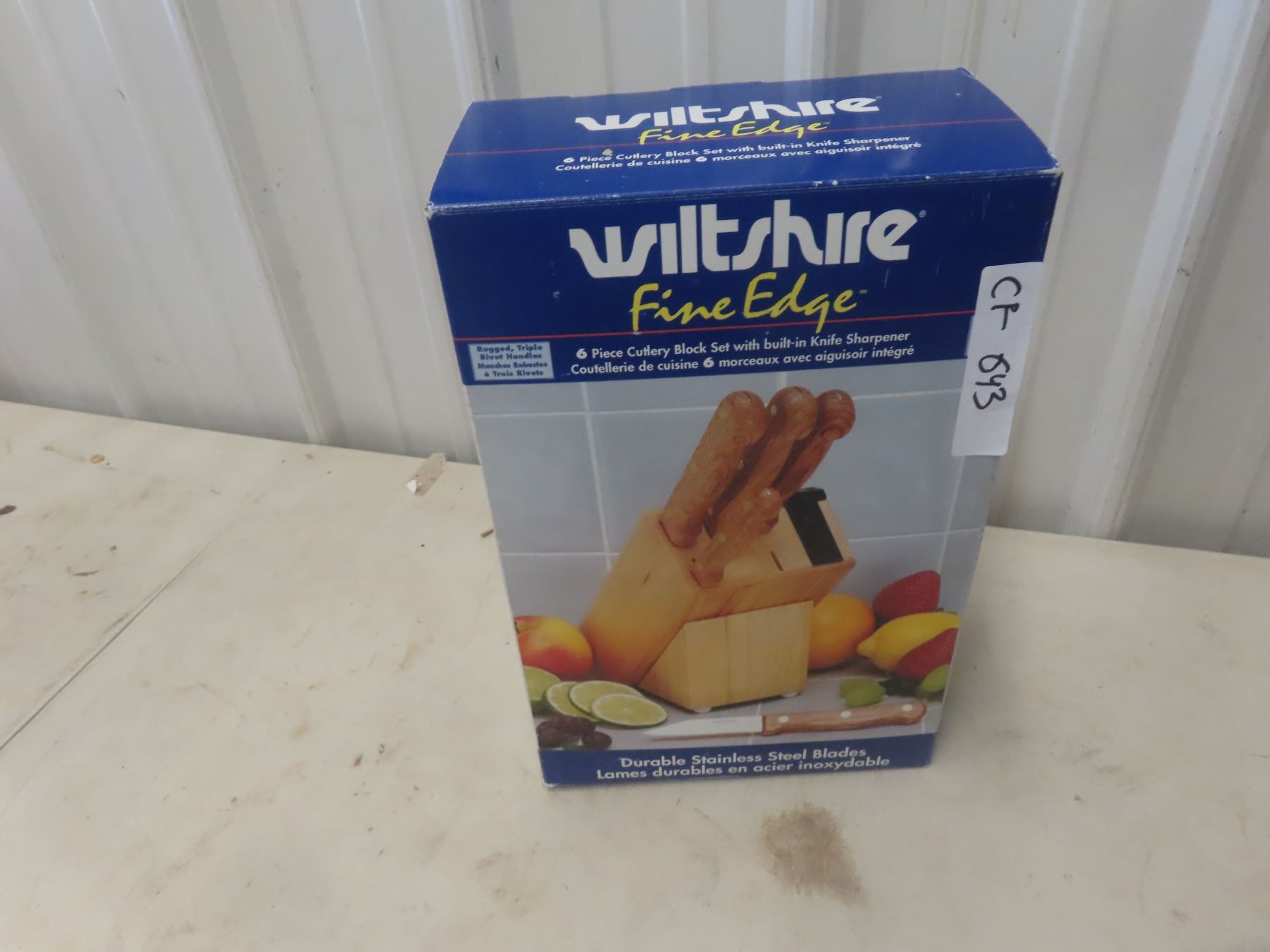 Wiltshire 6 pc Cutlery Set, Block with Knife Sharpener- New or Store Return