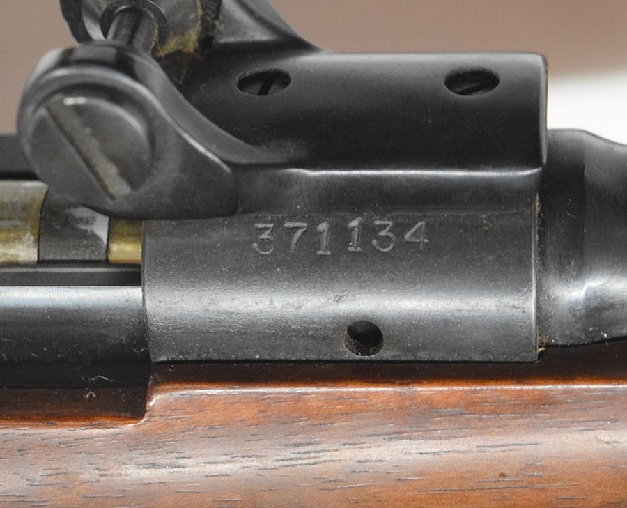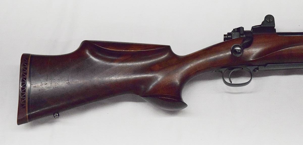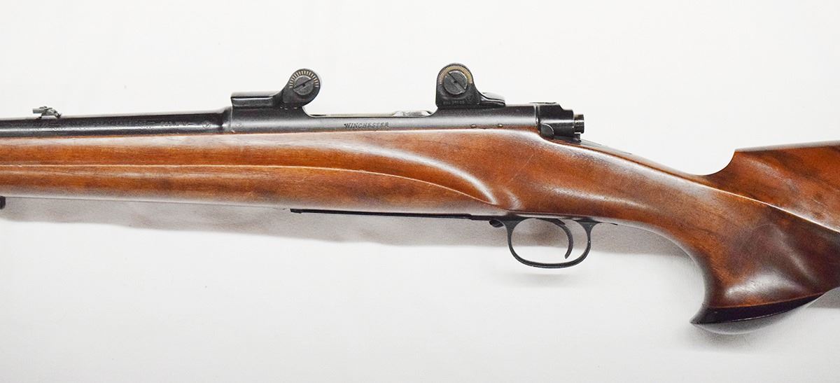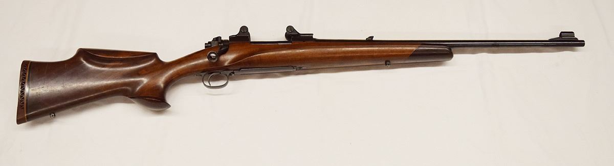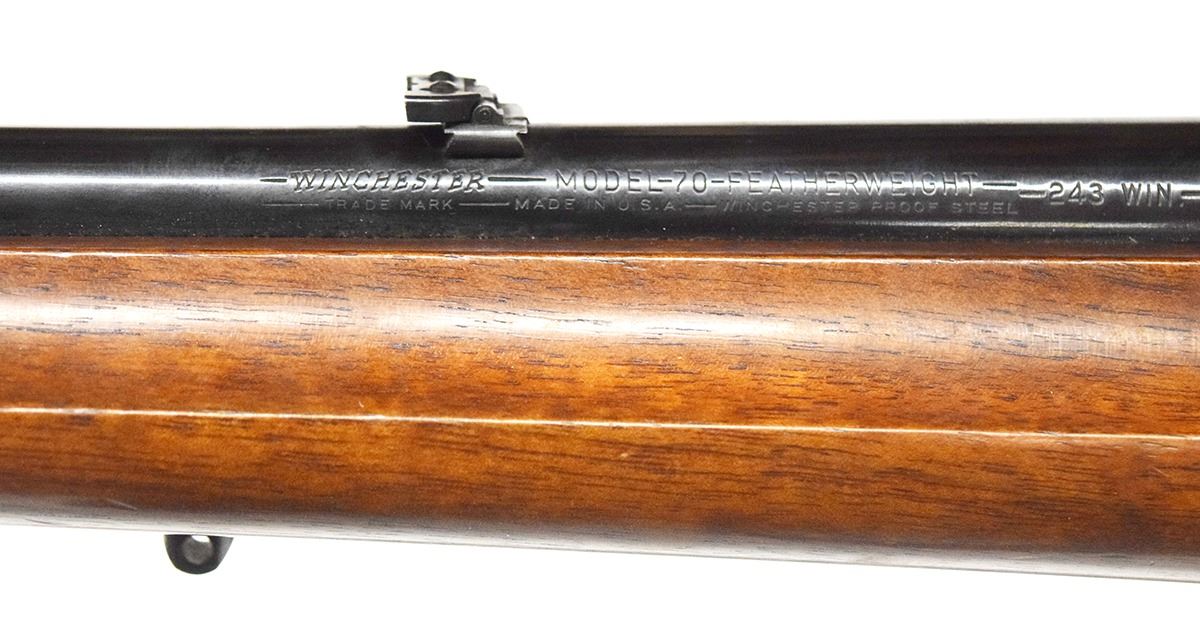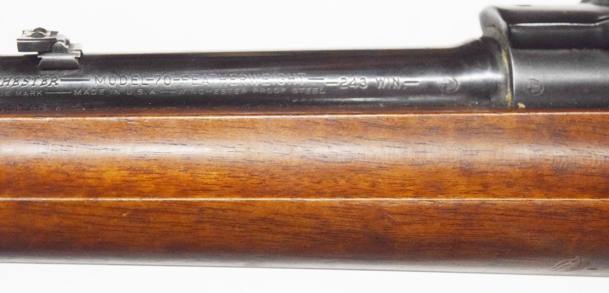 Win. Model 70, .243 Win., featherweight, custom stock, 22" bbl, s#371134, manufactured 1955