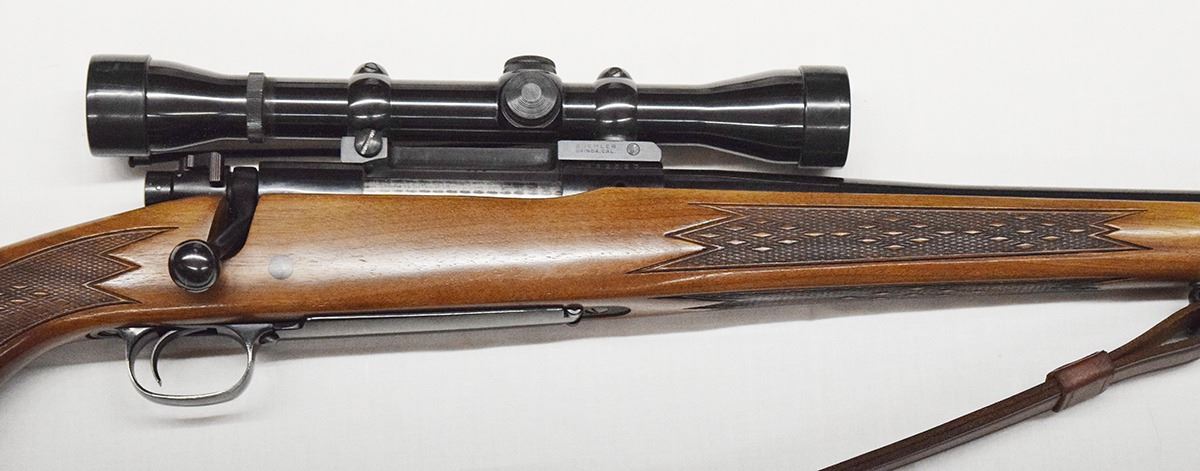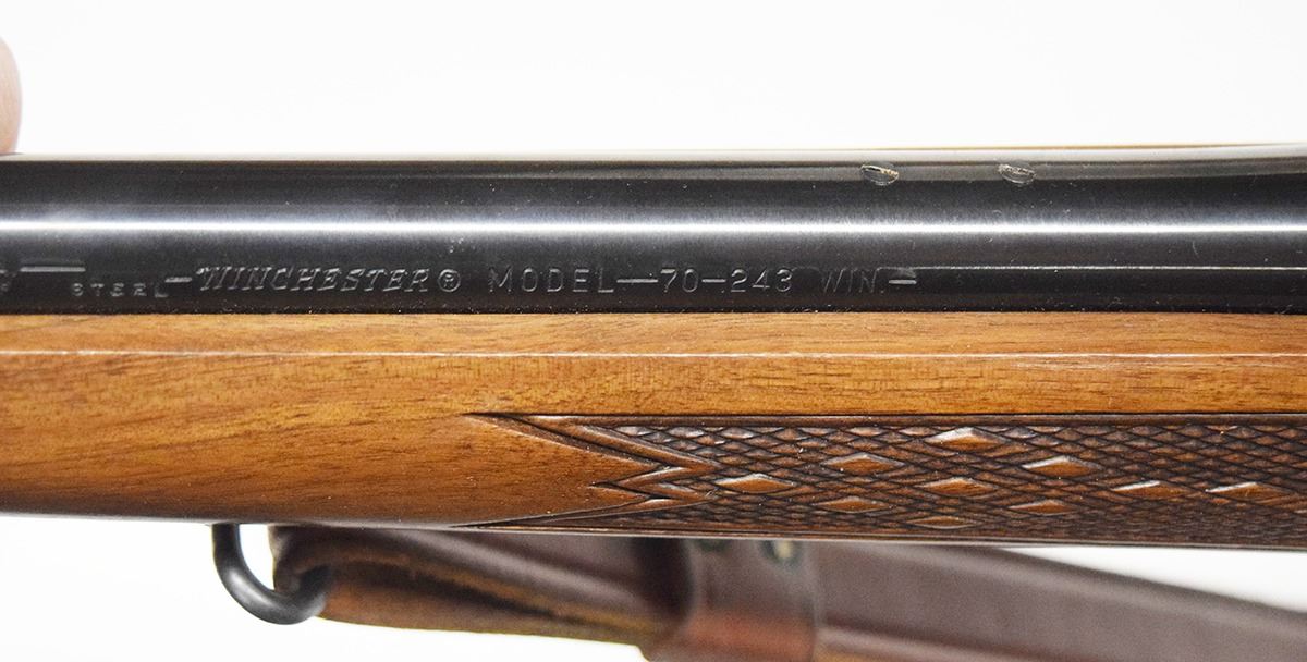 Win. Model 70, .243, w/Weaver K4-C3 scope, 22" bbl, s# 882253, manufactured 1968